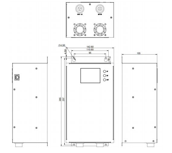 It is specifically developed for permanent magnet direct-drive industrial ceiling fans, and it can be adapted to various models of permanent magnet synchronous motors and different fan blade sizes. It is the most advanced direct-drive motor technology in China, featuring stepless speed regulation, speed tracking, and forward/reverse switching.